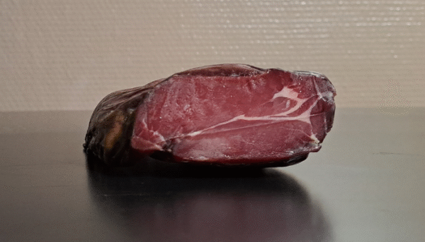 Het resultaat is een elegante, stevige ham met een subtiele wildsmaak en een kruidige diepgang die perfect past bij de rijke structuur van de coppa. De luchtige droging geeft de ham een zachte, smeltende textuur en een intense smaakbeleving die zowel puur als in gerechten tot zijn recht komt. Een unieke wildspecialiteit die luxe en ambacht combineert en een echte blikvanger is op elke borrelplank of in een verfijnd voorgerecht.